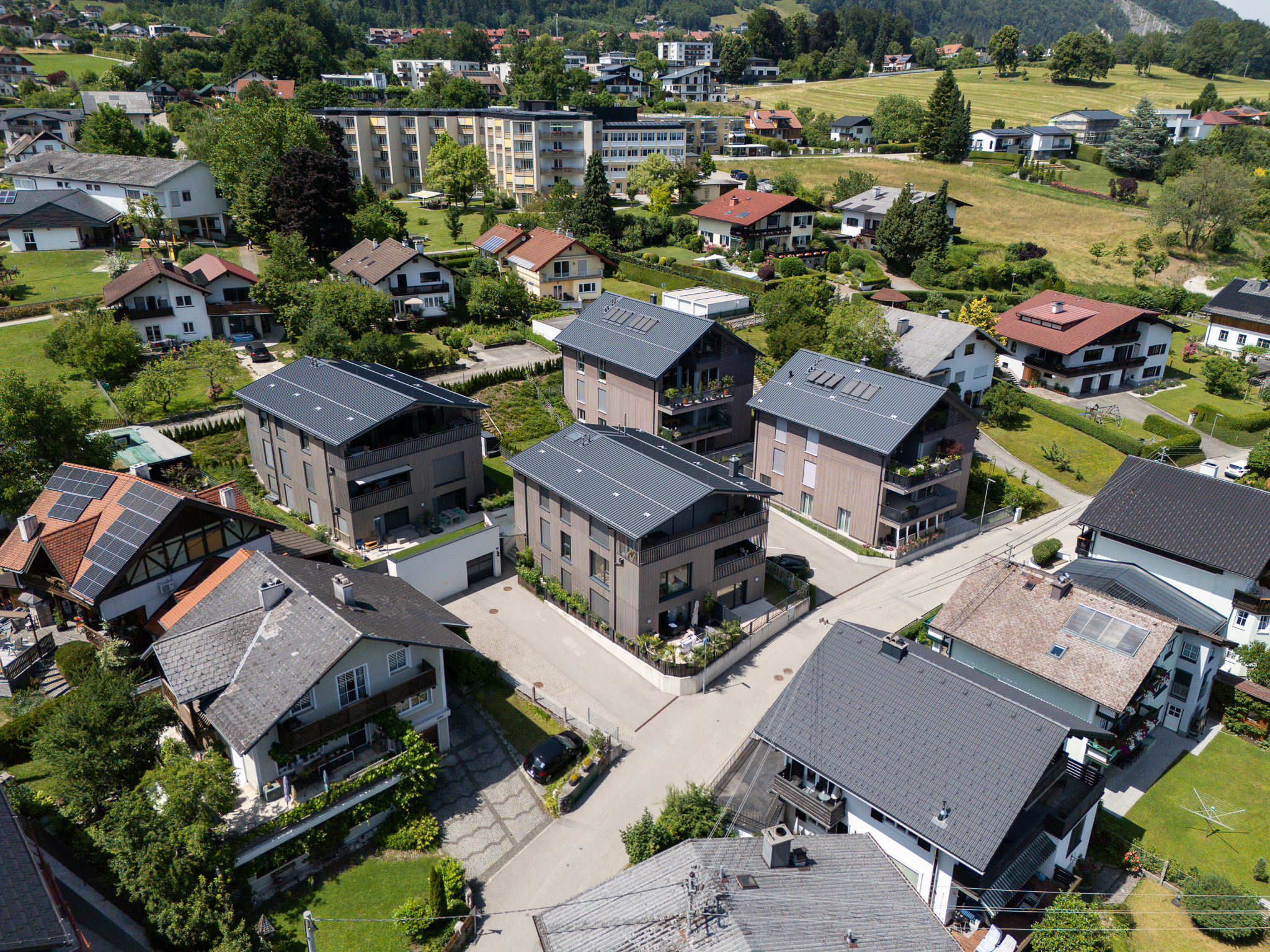 In the heart of Altmünster and just a few minutes’ walk from Lake Traunsee, the Seevillen Esplanade comprises eight high-quality condominiums spread over two modern, three-story buildings. The location is central yet quiet, with lake access, leisure facilities, and local amenities in the immediate vicinity. All apartments are equipped to a high standard, with spacious terraces or loggias, and private gardens on the ground floors. The well-thought-out design emphasizes functionality, light, and clear room concepts.