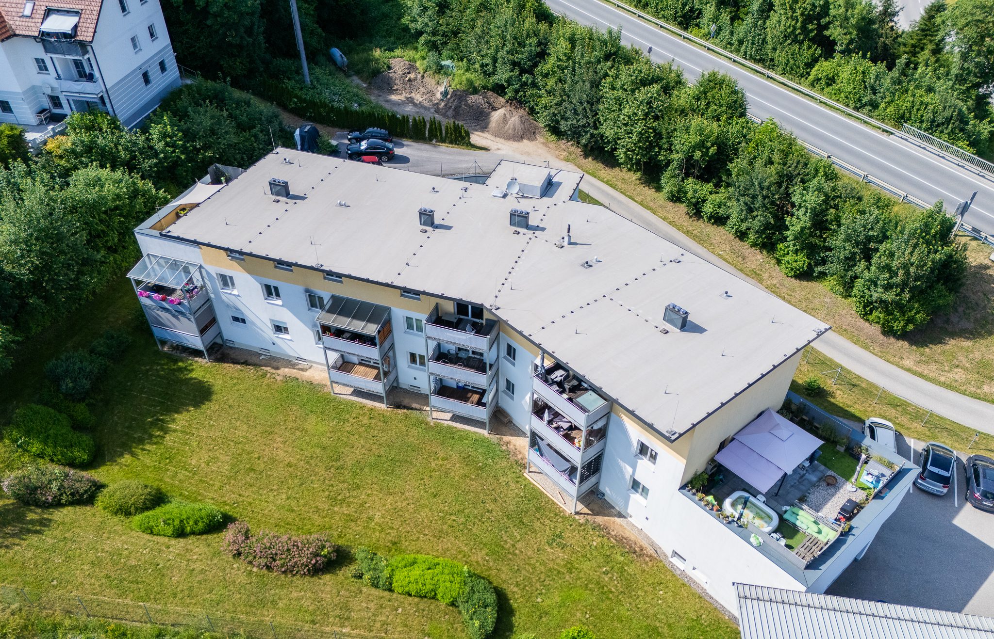 Jede Wohnung verfügt über einen eigenen Balkon oder eine Terrasse, die den Wohnraum nach außen erweitern und für zusätzlichen Komfort sorgen. Einige Einheiten punkten mit besonders großzügigen Freiflächen, die sowohl zum Entspannen als auch zum Gestalten einladen.
