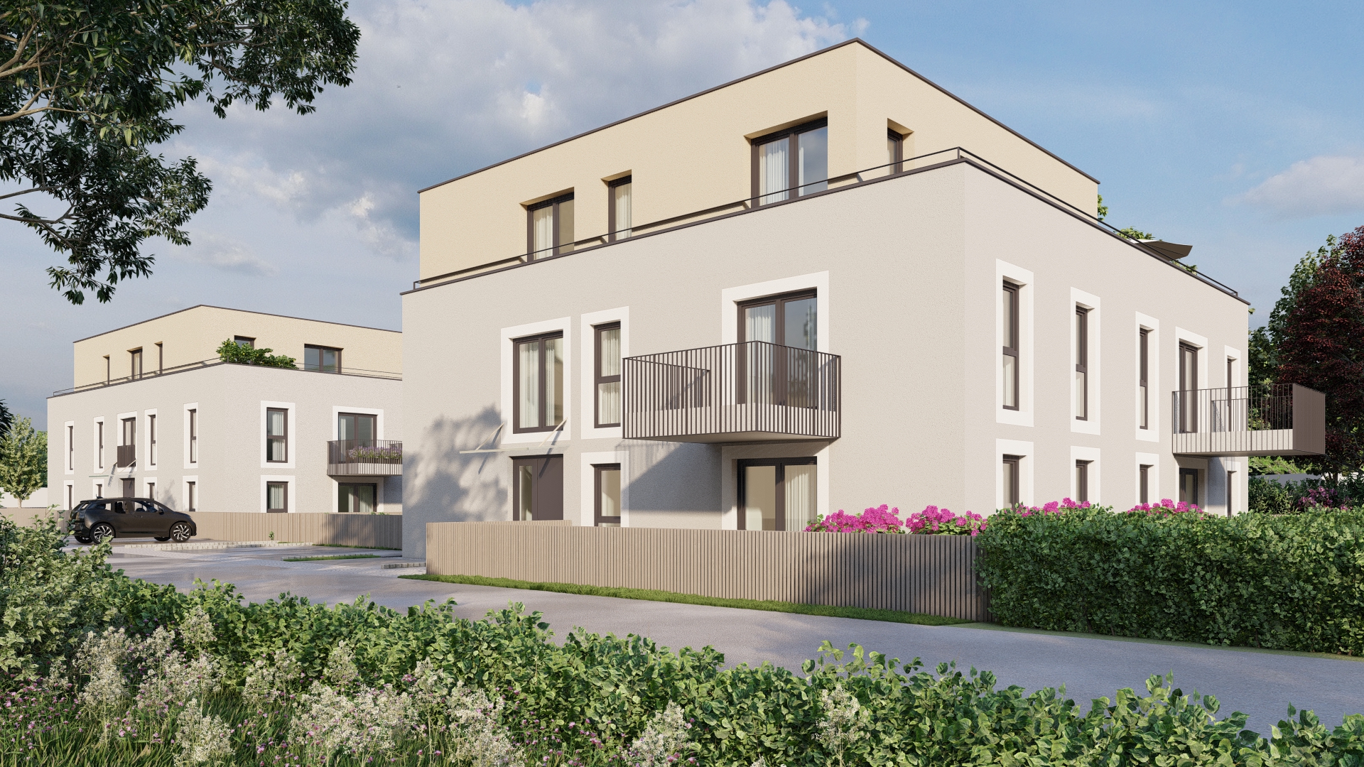 In idyllischer Lage am Rand von Rüstorf entsteht mit der Wohnanlage Johannisthal ein modernes Wohnprojekt mit insgesamt 17 hochwertigen Eigentumswohnungen. Zwei klar strukturierte Baukörper fügen sich harmonisch in die grüne Umgebung ein und bieten zeitgemäßes Wohnen für Menschen mit Anspruch an Qualität, Komfort und Ruhe.